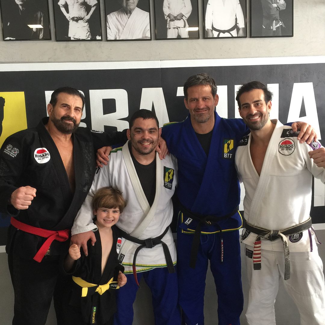 Rosado e a prole após uma semana de treinos duros, na musculação e nos tatames.